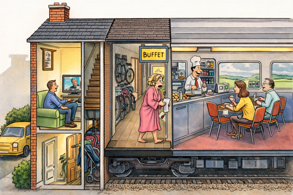 The Buffet Car. I’ve been redesigning a small terrace house recently. Trying to make it more usable. It’s typical for this type of house. Narrow. The front door, the lounge, the long corridor front to back. The stairs. All of it narrow. They’re like trains, but you have to live in them. And the bathroom’s […]